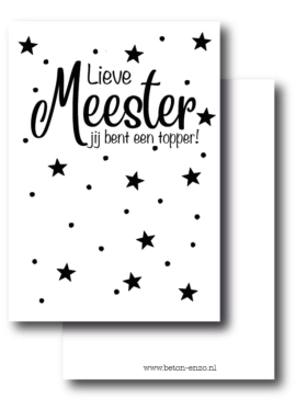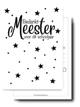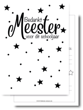 Een cadeau voor de meester uitzoeken kan lastig zijn. Daarom helpen we je graag een handje. Door het leuke assortiment met cadeaus wordt het ook makkelijk om de voor de meester een cadeau uit te zoeken. Of het nu gaat om het vieren van een speciale gelegenheid, zoals zijn verjaardag, of gewoon om hem te bedanken voor een geweldig schooljaar, het juiste cadeau kan een wereld van verschil maken. Een persoonlijk notitieboekje, een persoonlijke kaart of zelfs een sleutelhanger kunnen perfecte cadeaus voor je meester zijn.