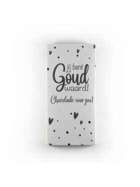 - Chocoladereep van Tony Chocolonely met tekst ‘Jij bent goud waard’