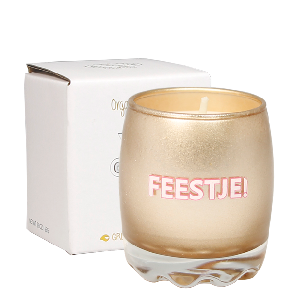 Op de kaars staat het vrolijke woord ‘Feestje!’, wat deze kaars perfect maakt als cadeau voor een verjaardag, housewarming of gewoon zomaar – want elk moment is een goede reden voor een feestje! Met een brandtijd van ca. 20 uur zorgt deze kaars voor een heerlijke geur en een feestelijke sfeer.