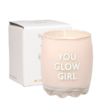 Op de kaars staat de inspirerende tekst ‘You Glow Girl’, een perfecte boodschap voor iemand die wel een lichtpuntje verdient. Of je nu een vriendin wilt aanmoedigen, iemand wilt verrassen met een uniek cadeau of gewoon jezelf wilt verwennen – deze kaars is altijd een goede keuze. Met een brandtijd van ca. 20 uur geniet je optimaal van de frisse en rustgevende geur.